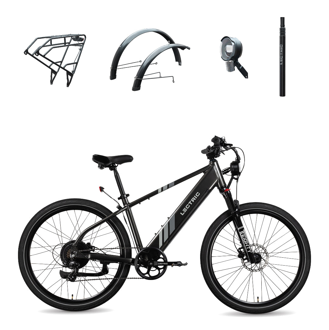 The Lectric XPress brings unparalleled performance to a classic look. It sports a full-size wheelbase with an industry-leading torque sensor paired with Lectric PWR+ programming - giving adventurers intuitive and controlled power delivery with each pedal stroke. Options include a 500W and a 750W setup, accommodating a wide range of preferences and abilities. The XPress also features a custom-designed and upgraded TC•Eighty front suspension fork, a 7-speed drivetrain, hydraulic disc brakes, and 27.5 x 2.1-inch city tires!